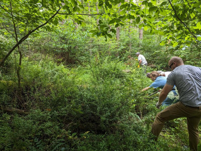 We helped restore Oakford Park Nature Reserve, a 33-acre former early 20th century amusement park in Westmoreland County, Pennsylvania. Together we hauled trash, removed a silt sock from the trail, and installed an entrance sign. We filled two full dumpster bags in a single session.